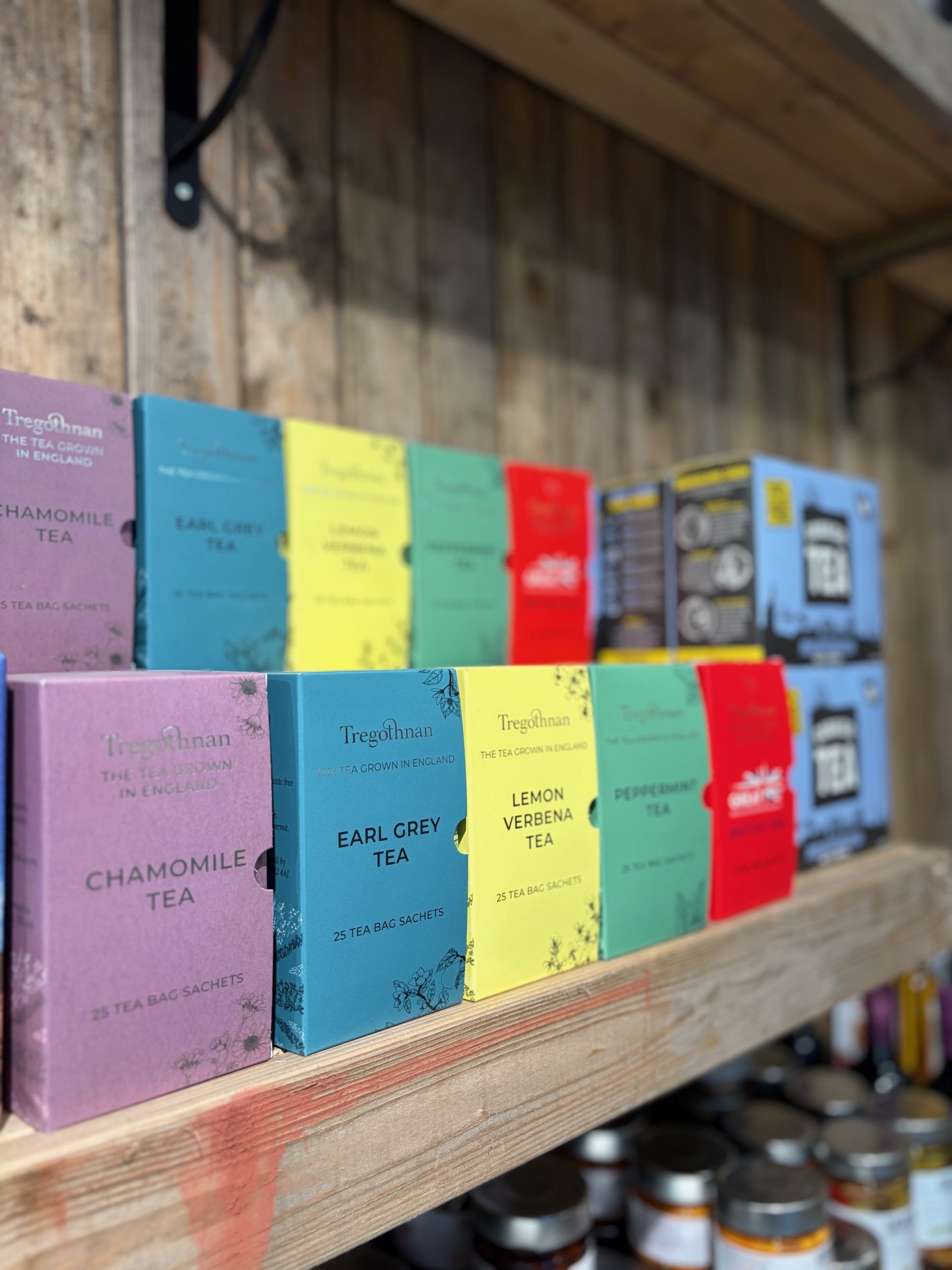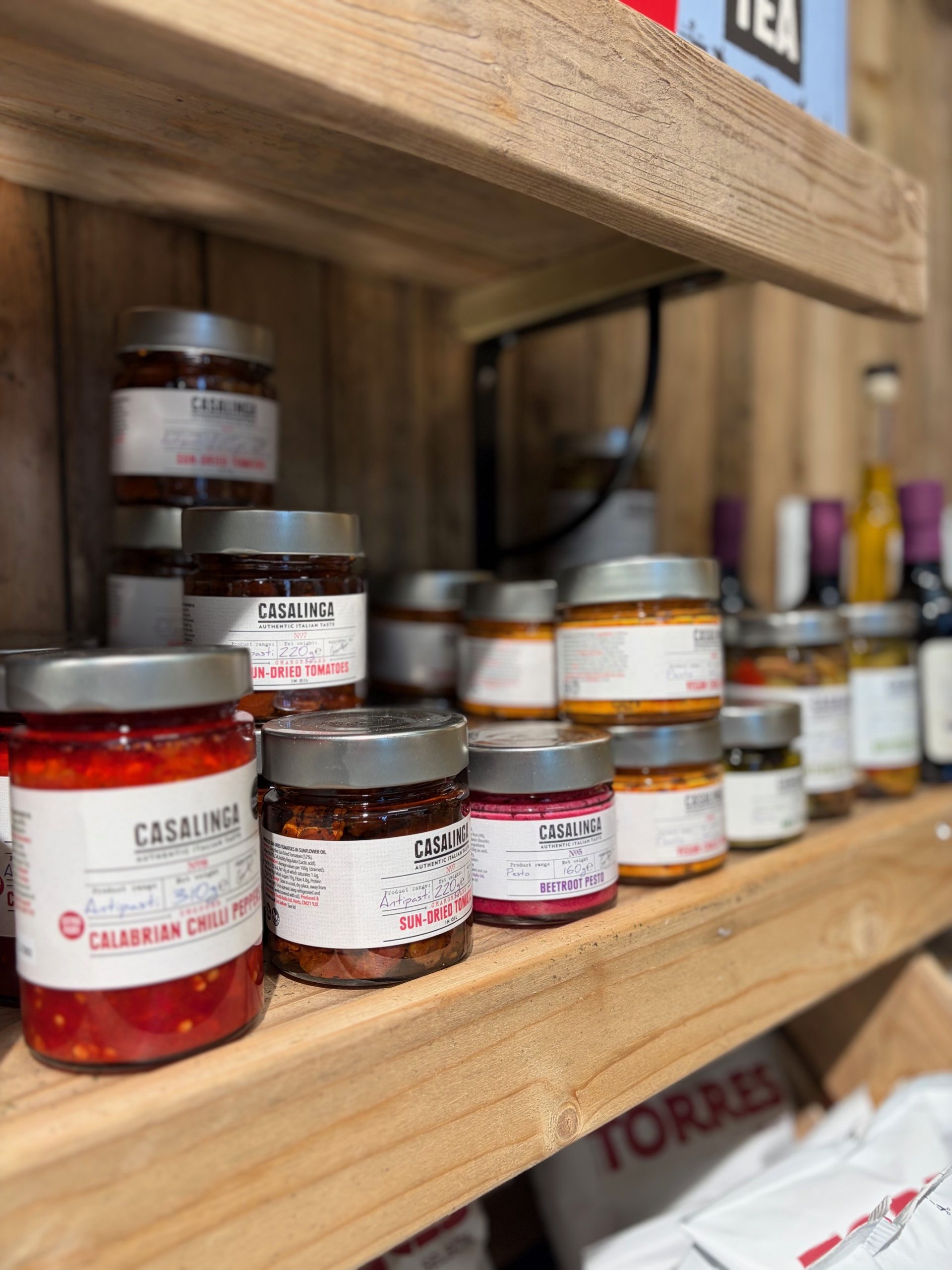 Tucked inside the shop, you’ll find a carefully selected range of fresh produce and local goods — perfect for picking up something for the kitchen while you’re here.